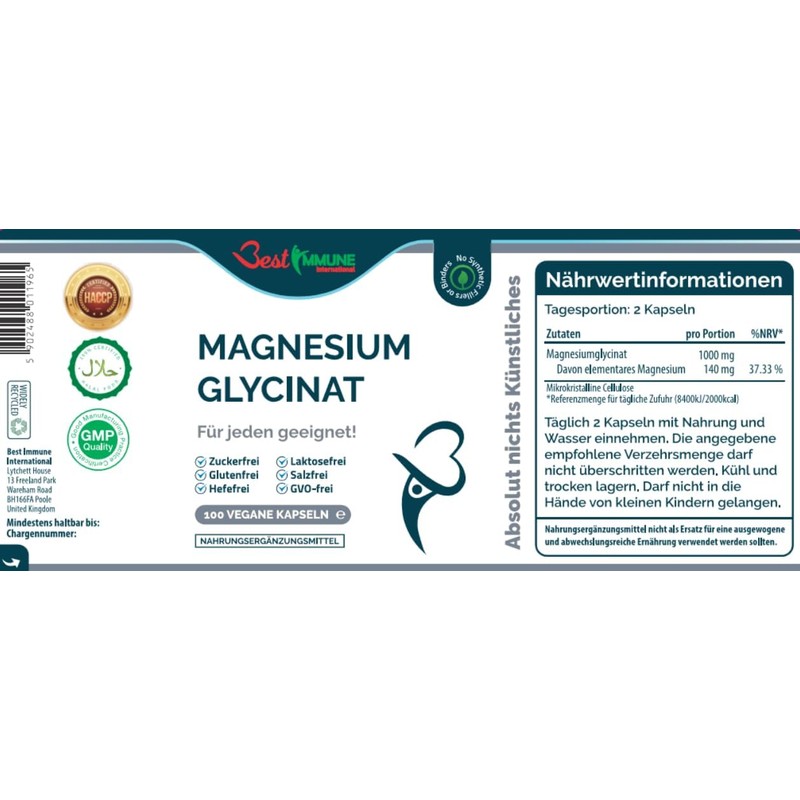 Natural Magnesium Glycinate 500mg - Premium Quality, High Bioavailability, 100 Vegan Capsules - Ideal Strength Supplement