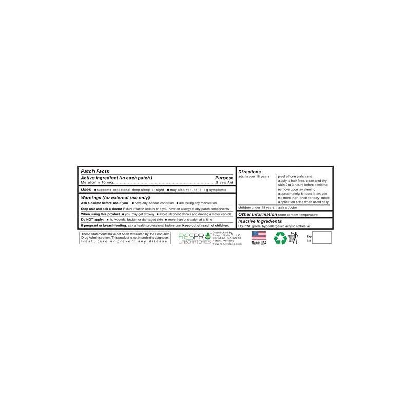 All Respro Labs Natural Melatonin Patches are made using an advanced formula for proven release performance that works continuously throughout the night, or whenever you choose to wear it. The Respro Labs Melatonin Patch is formulated for lab-proven superior release compared to other patches. Respro Labs Patches and packaging are designed for your lifestyle, wherever you go.