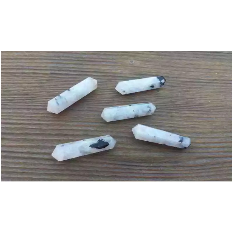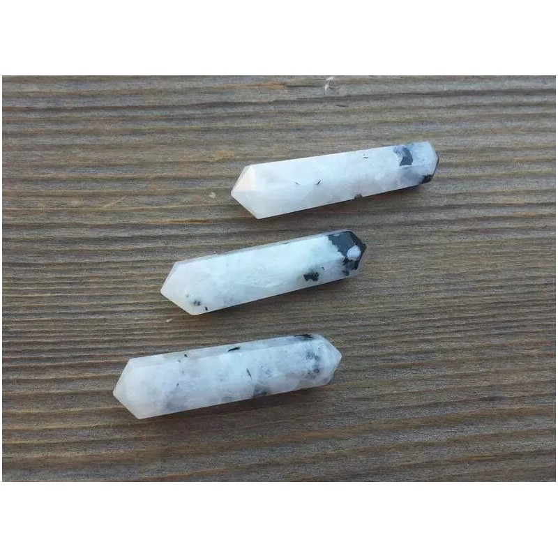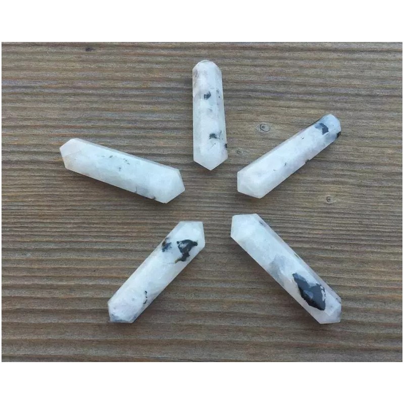 NATURAL RAINBOW MOONSTONE DOUBLE TERMINATED GEMSTONE CRYSTAL PENCIL POINT (ONE)