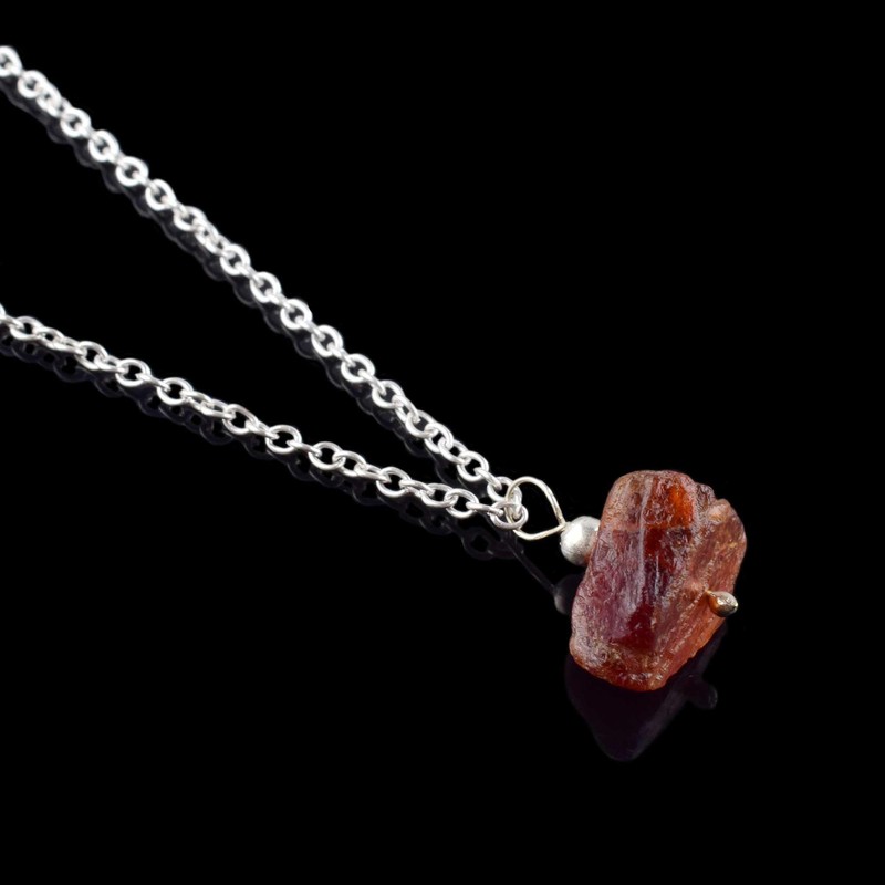 Natural Raw Hessonite Crystals Pendant Necklace, Rough Gemstone, Healing Crystals, Birthday, Gift for Her, Gemstone Jewelry 18 inch AAA+ Quality