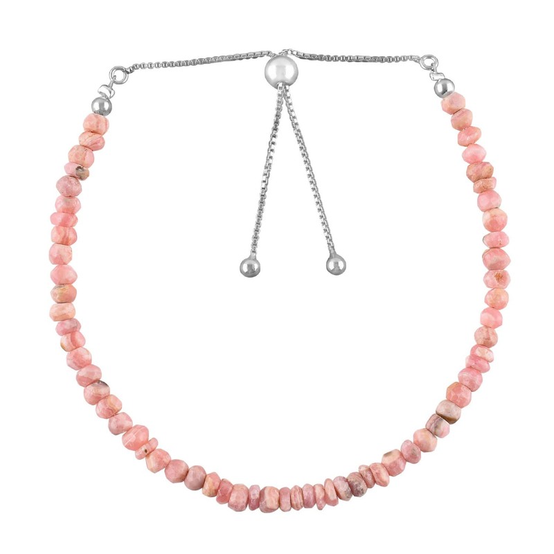 Natural Rhodochrosite Gemstone Beads Bolo Bracelet, Adjustable Slider Chain, Energy Stones, Chakra Healing Crystals, Silver Plated, Gift for Women, Birthstone, Gemstones Jewelry,10 inch