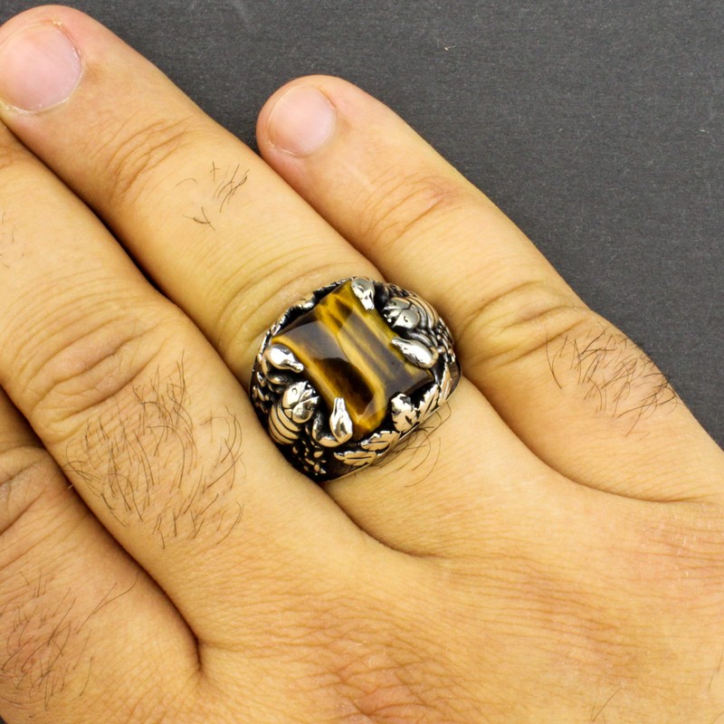 • High quality solid 925 sterling silver tiger eye ring with 925 Stamp ( Mark ) - highly polished with Perfect Finishing special design oxidized luxury men's ring with unique craftsmanship