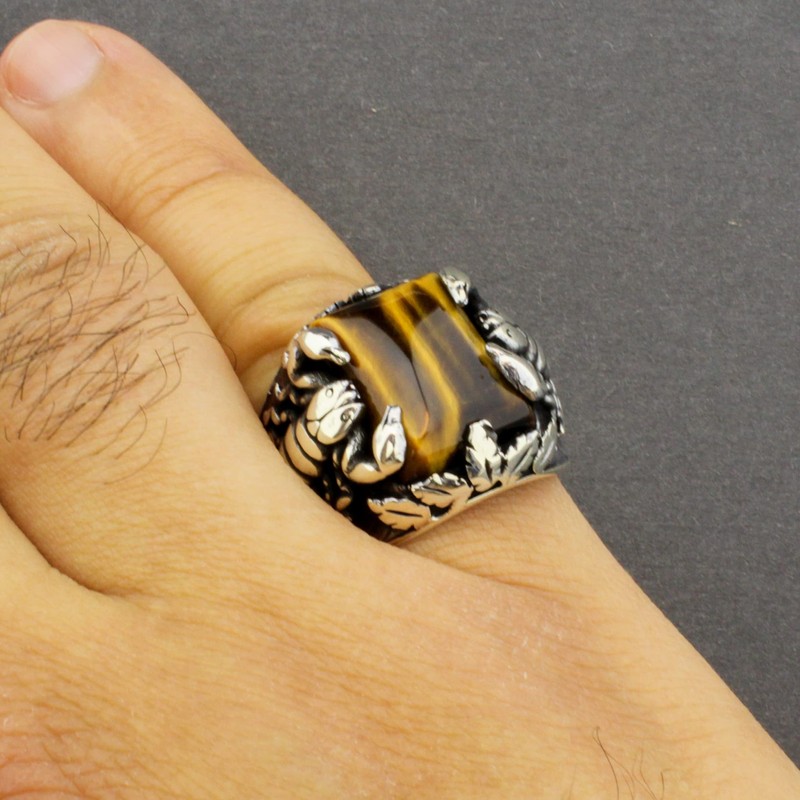 Special scorpion vintage design Handmade Turkish men ring made from pure solid 925 sterling silver and natural tiger eye stone, this combination of high quality material and artisian craftmanship gives this Turkish ottoman ring bold look that’s sure to be treasured and make this Turkish mens ring with tiger eye stone best gift for yourself or your loved ones,… we guarantee our jewelers exceed it's real value .