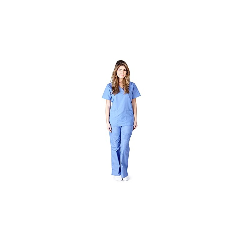 Natural Uniforms Women's Mock Wrap Scrub Set (Ceil Blue) (Large)