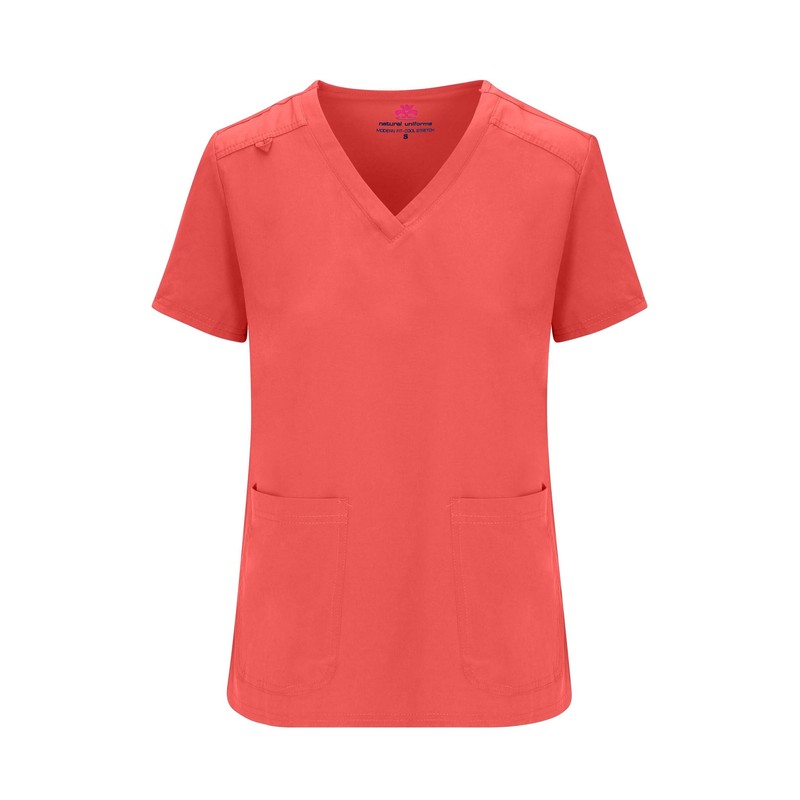 - TOP: V-Neck, Short sleeve, 2 Lower pockets, ID Badge Loop, Double-needle stitching at seams, side vents.