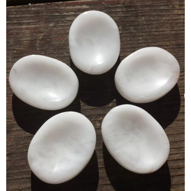 NATURAL WHITE AGATE GEMSTONE WORRY STONE (ONE)