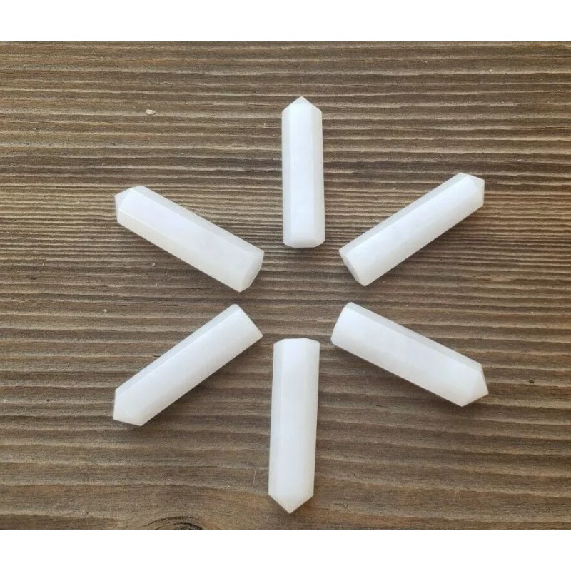 NATURAL WHITE AGATE SINGLE TERMINATED GEMSTONE CRYSTAL PENCIL POINT (ONE)
