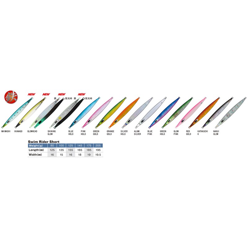 - Iron Jigs "Swim Rider Short": A short jig that can be used to maneuver your liking, such as a small jerk, a floating fall, etc. It can be used with all mighty items from a throw to a short jerk, or a quick wind