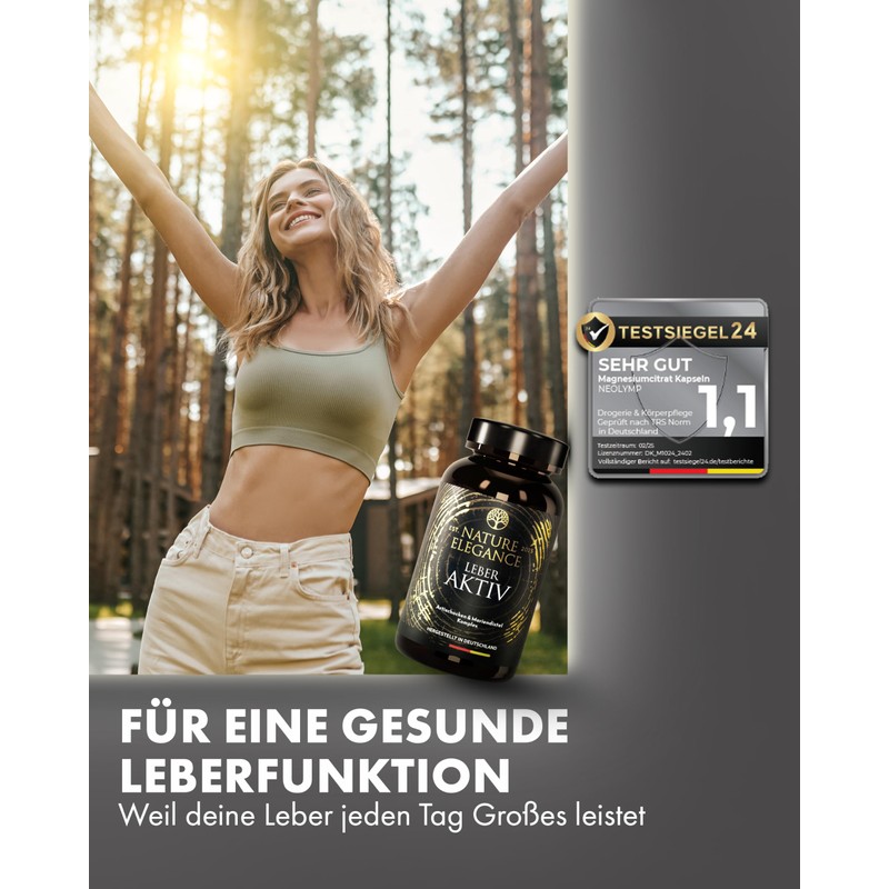 Nature Elegance Leber Komplex – Hochdosierte Mariendistel Kapseln mit Artischocke, Löwenzahn, Curcuma, Desmodium & Cholin – Leberkur entgiften Testsieger (Leber Komplex 120 Kapseln)