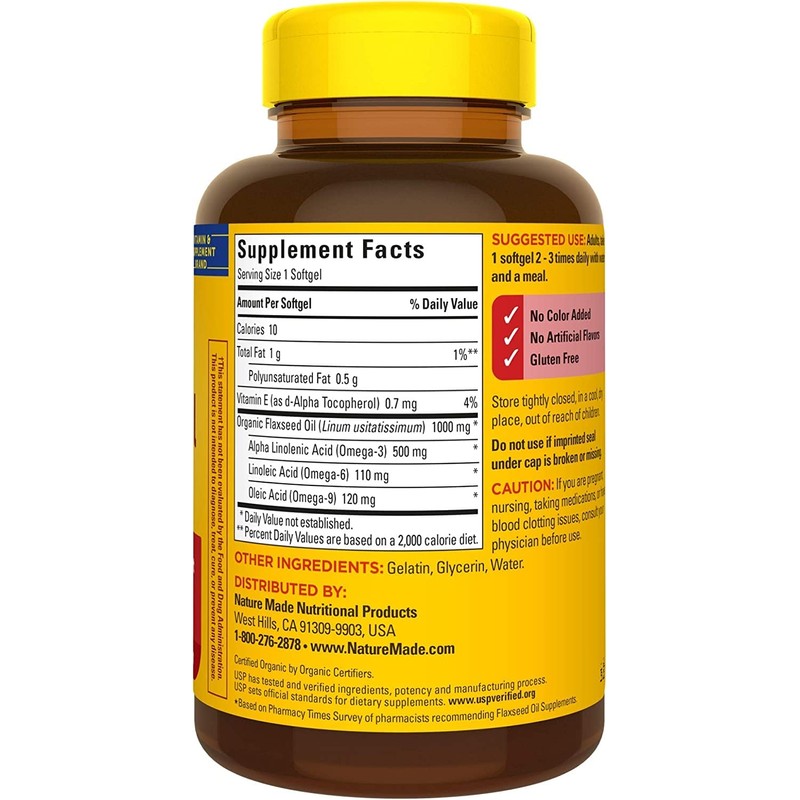 - Nature Made Flaxseed Oil 1000mg Softgels are made with organic Flaxseed oil, which is a source of ALA (alpha-linolenic acid) Omega-3
