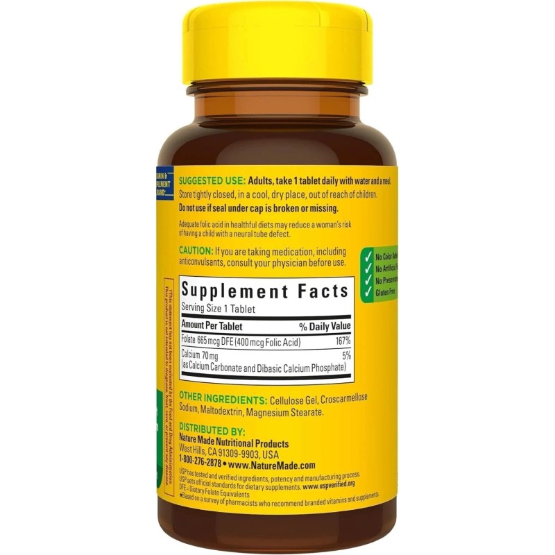 - Nervous system support supplement: contains one 250 count bottle of Nature Made Folic Acid 400 mcg (665 mcg DFE) Tablets for a 250-day supply
