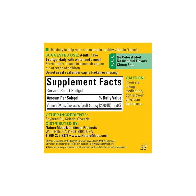 1 Botella de Nature Made D3 Suplemento dietetico 90 capsulas