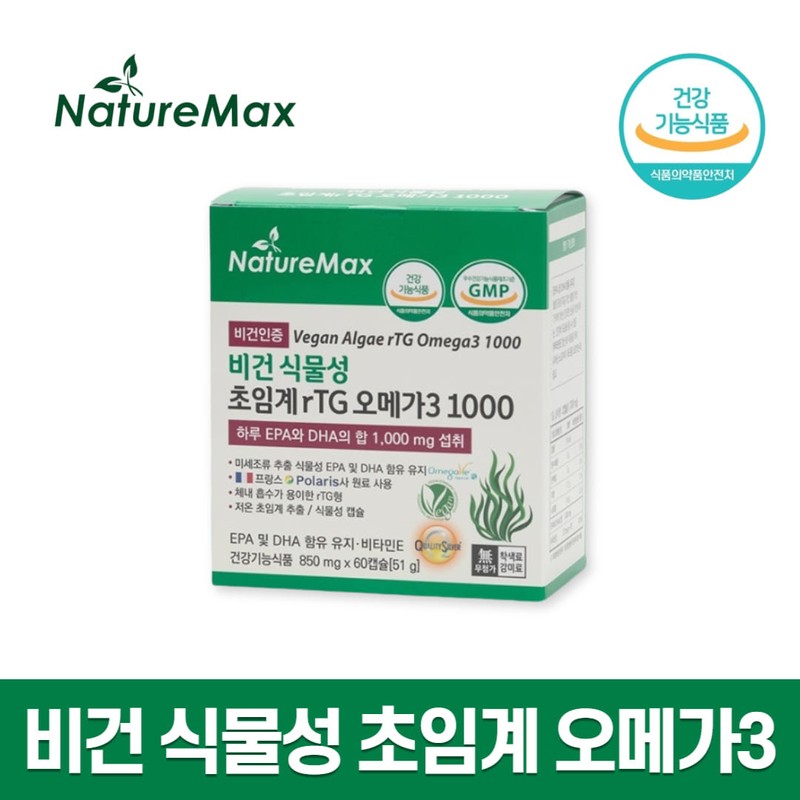 Nature Max Vegan Vegetable Supercritical r-TG Omega 3 1000 Improves blood circulation, improves memory EPA DHA Vitamin E Microalgae Pregnant women / 네이처맥스 비건 식물성 초임계 r-TG 오메가3 1000 혈행개선 기억력 개선 EPA DHA 비타민E 미세조류 임산부