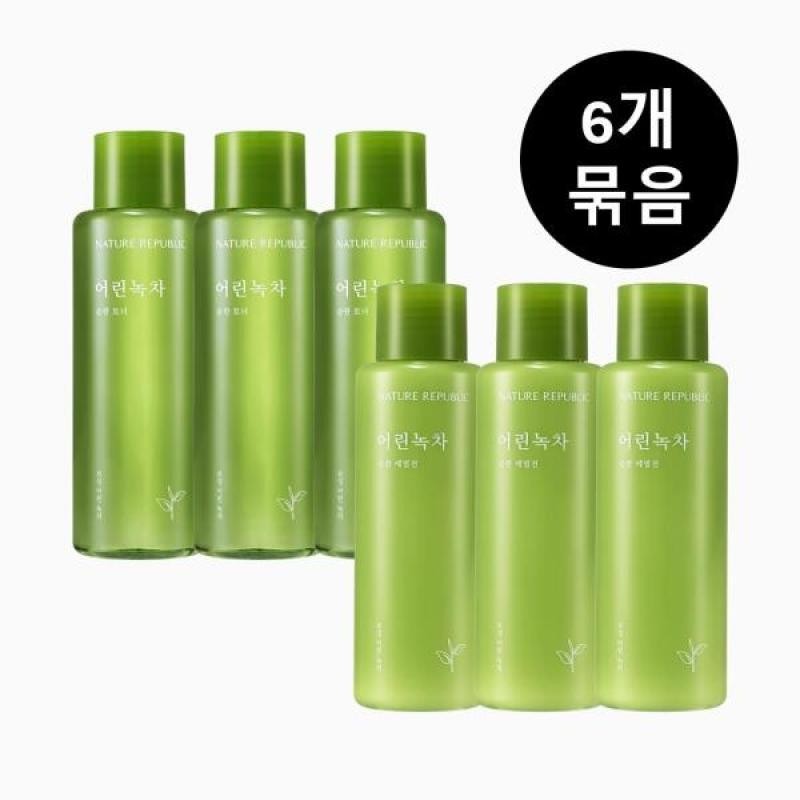 Nature Republic Young Green Tea Mild Toner 3 + Emulsion 3 / 네이처리퍼블릭 어린녹차 순한 토너 3개+에멀전 3개