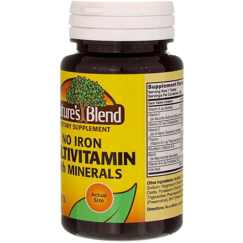 Nature's Blend Multiple Vitamin With Minerals Tablets No Iron - 100 Tablets, Pack of 2