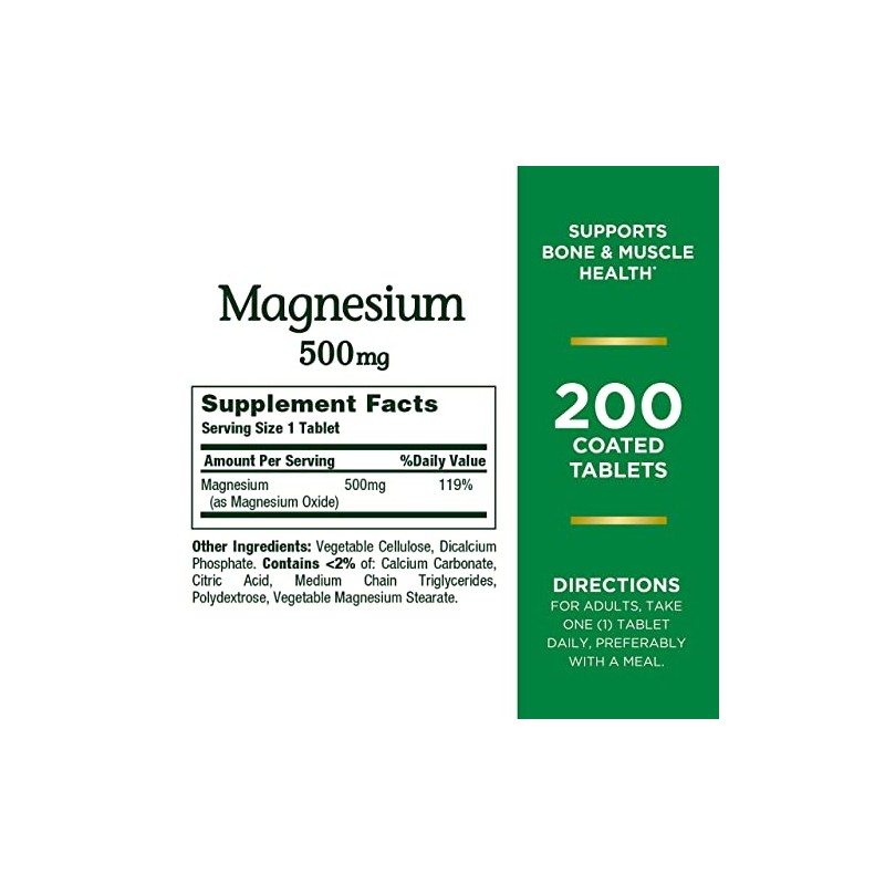 Nature’s Bounty Magnesium, Tablets, 500 mg- 200 Ct..