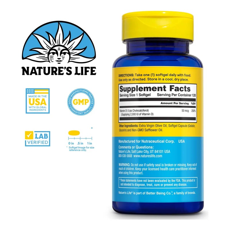 Nature's Life Vitamina D3 2000 Iu Para Huesos Y Defensa