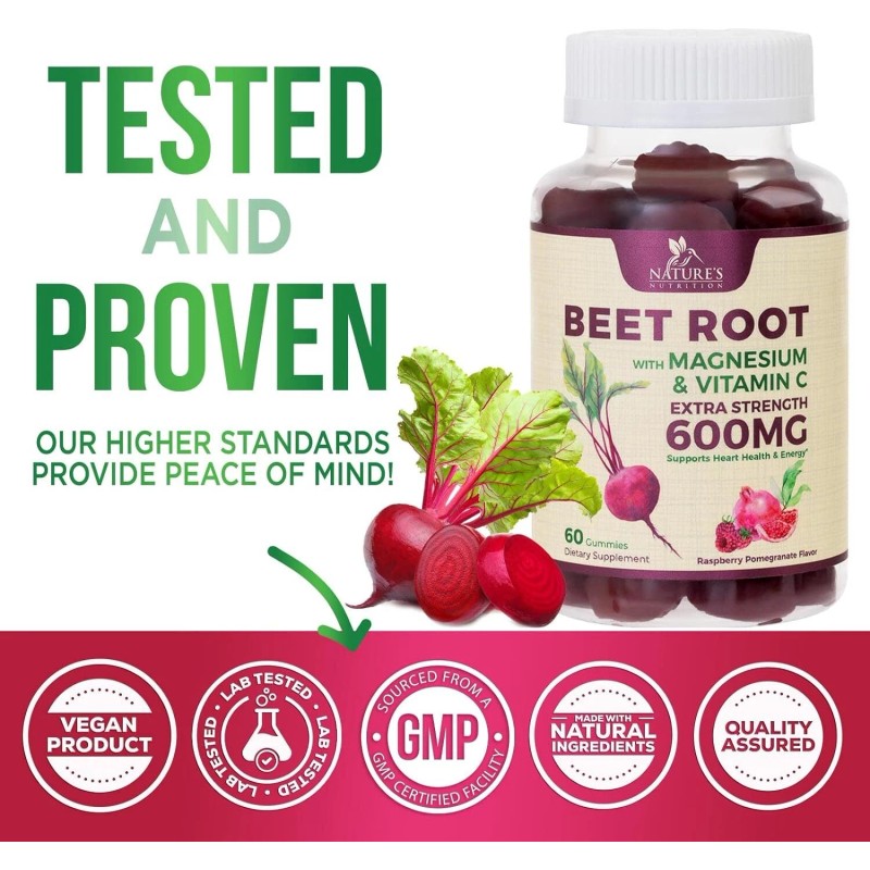 - Beet Chewables Gummies by Nature's Nutrition: Gummy beets chews made with beetroot root powder for super tasty heart