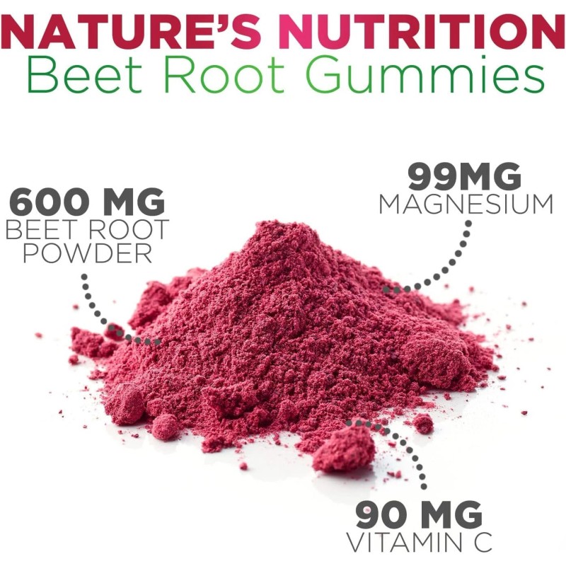 - Beetroot Powder: Each soft & tasty Beet Root gummy is packed with natural beet root powder