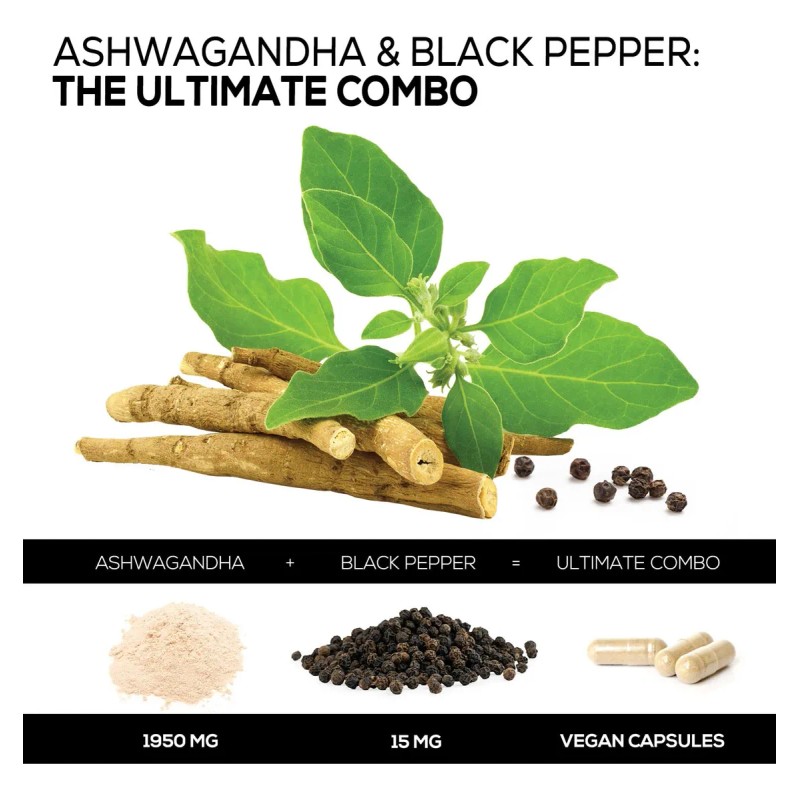1950 mg de ashwagandha orgánica por dosis (polvo + extracto)