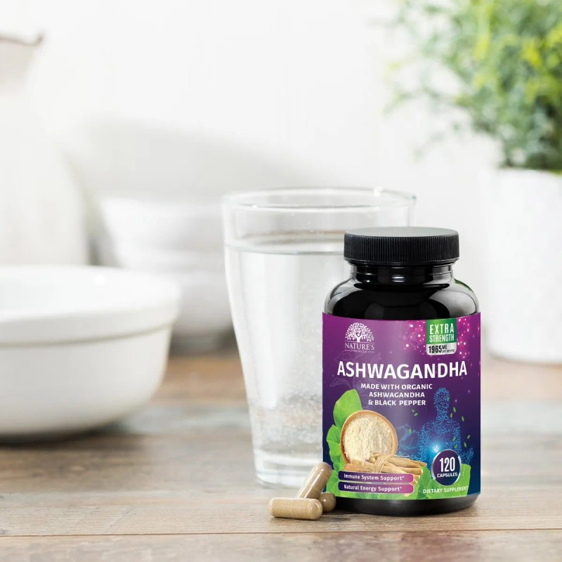 🌱 Nature’s Strength Ashwagandha Orgánica 1950 mg – 120 Cápsulas | Adaptógeno Vegano para Estrés, Enfoque, Energía y Salud Inmune 🛡️