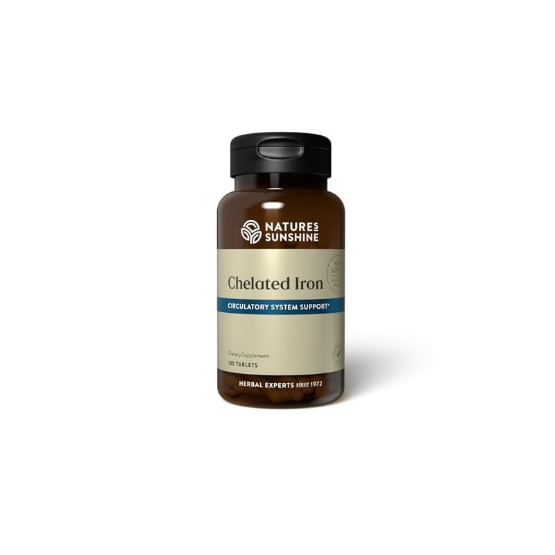 Nature's Sunshine Iron-Chelated 25mg, 180 Tablets | Provides Circulatory System Support, Helps the Transport of Oxygen to the Tissues, and Provides 25 mg Iron per Tablet