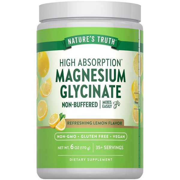 Nature's Truth Magnesium Glycinate Powder | 6 oz | Lemon Flavor | High Absorption | Vegan, Non-GMO, Gluten Free Supplement