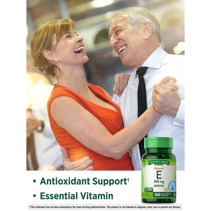 **Nature’s Truth’s Vitamin E:** We’re driven by a passion for Vitamin Innovation, Purity and Premium Quality. Our beneficial supplement provides you with 268 mg of Vitamin E (as d-Alpha Tocopherol) per Quick-Release softgel. Purity and potency are our top priorities at Nature's Truth, which is why our formula is Non-GMO, Gluten-Free and contains no Artificial Flavor, Sweetener or Preservatives. It’s a wonderful addition to any regimen or lifestyle for Men & Women!