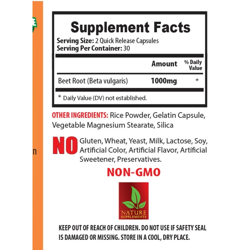 NATURE SUPPLEMENTS Pure nutrients - BEET ROOT - Farm freshness 2 Bottle 120 Capsules