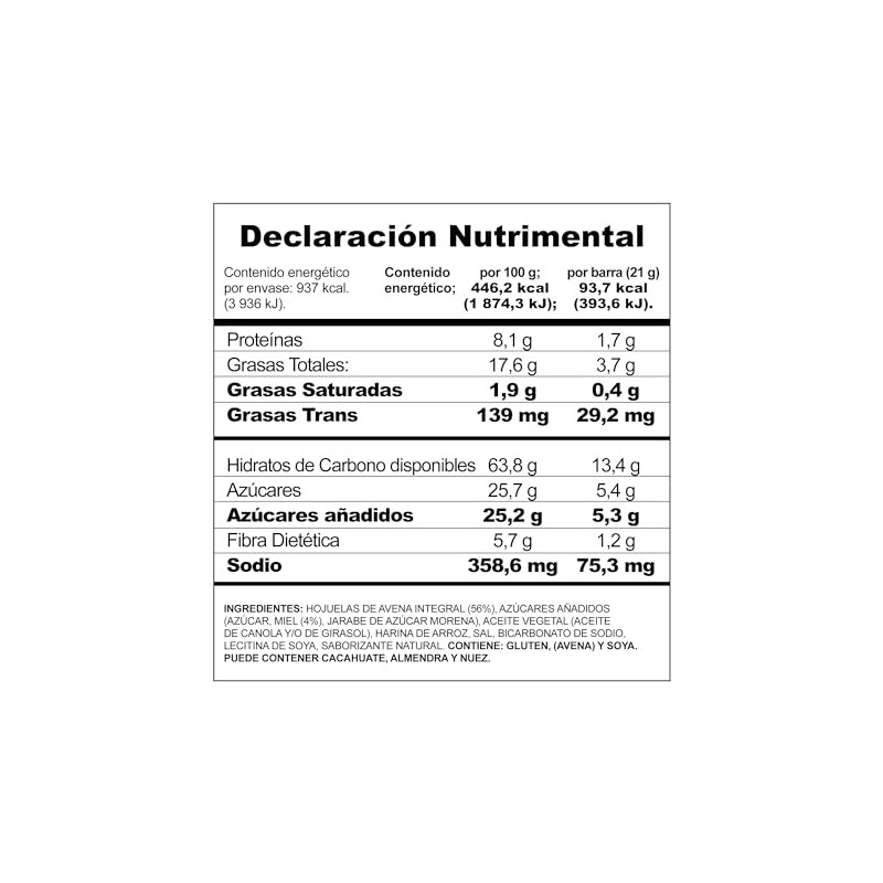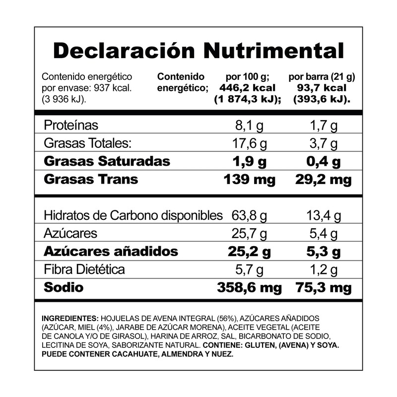 - Una deliciosa combinación de miel real con 16 gramos de avena integral.