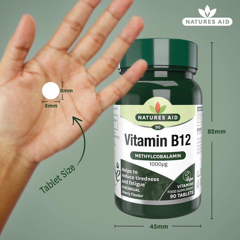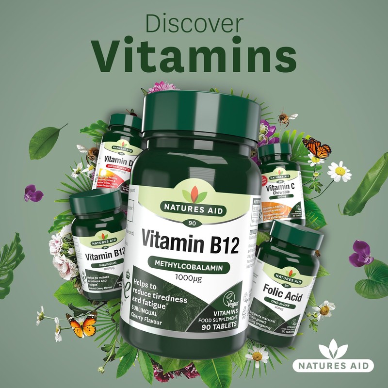 Natures Aid Vitamin B12 1000µg – High Strength Sublingual Tablets – Supports Energy, Metabolism & Nervous System – Vegan, Non-GMO, Gluten-Free Supplement – 90 Tablets