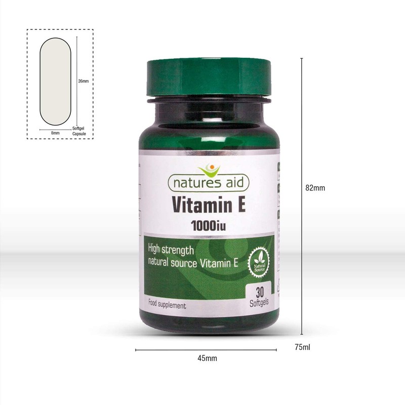 Natures Aid Vitamin E 1000iu, Natural Source, High Strength, 30 Softgel Capsules