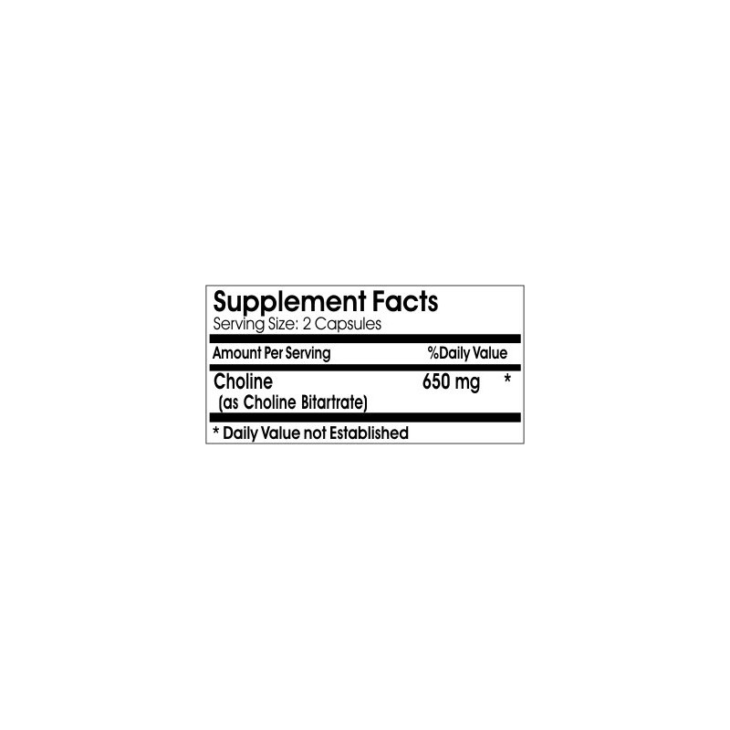 - Choline Bitartrate 650mg ~ 200 Capsules - No Additives ~ Naturetition Supplements