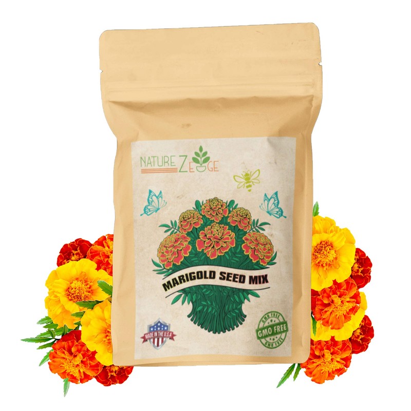 NatureZ Edge Marigold Seeds Mix, Over 5600 Seeds, Marigold Seeds for Planting Outdoors, Dainty Marietta, Petite French, Sparky French, and More