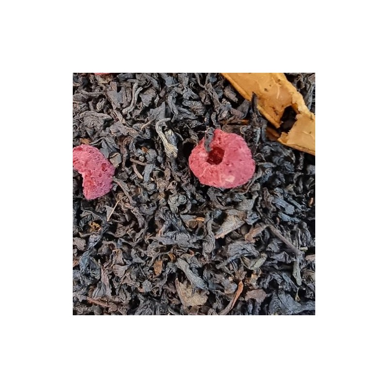 - Ingredients: black tea, pear pieces, raspberries freeze dried, aroma