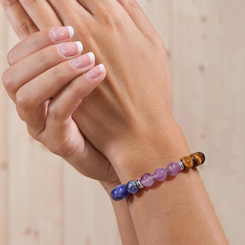 - Armbänder zur Angstlinderung: Armbänder zur Angstlinderung enthalten Kristallperlen, darunter Amethyst, Tigerauge und Sodalith. Jeder Edelstein wurde aufgrund seiner einzigartigen Heilwirkung ausgewählt, um Ruhe, Positivität und ein allgemeines Wohlbefinden zu fördern