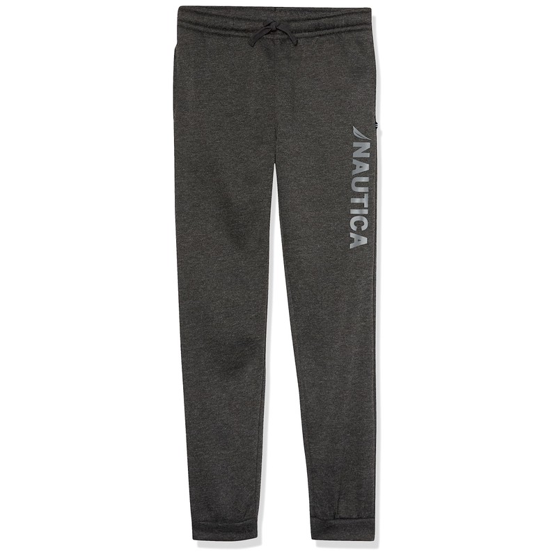 Nautica Boys' Pull-On Fleece Jogger Sweatpant, Drawstring Closure, Stacked Coal Heather, 4