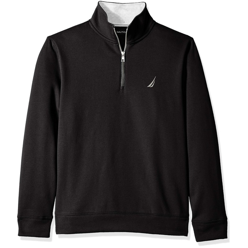 NAUTICA Men's Solid 1/4 Zip Fleece Sweatshirt, True Black, X-Large