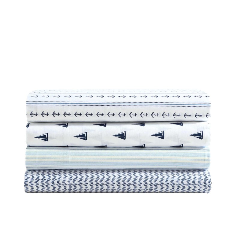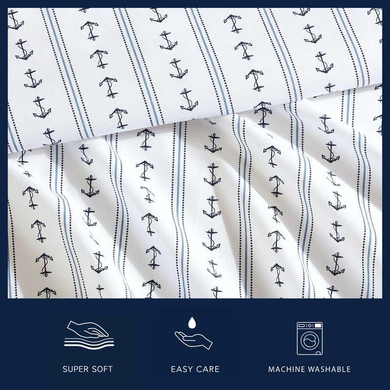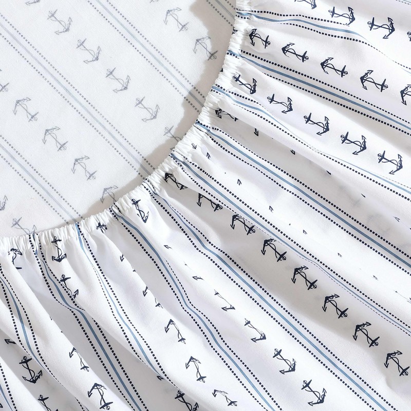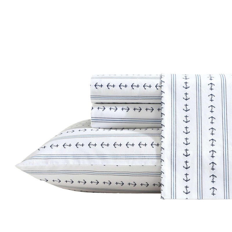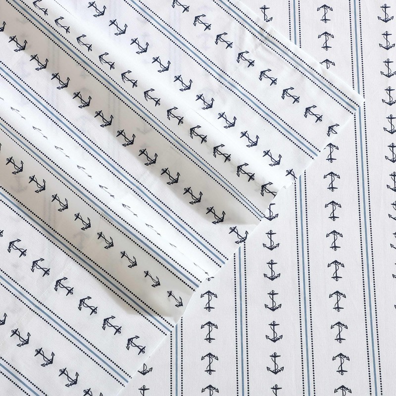 Nautica - Sheets, Cotton Percale Bedding Set with Matching Pillowcases, Crisp & Cool, Deep Pocket (Anchor Lines Blue, King)