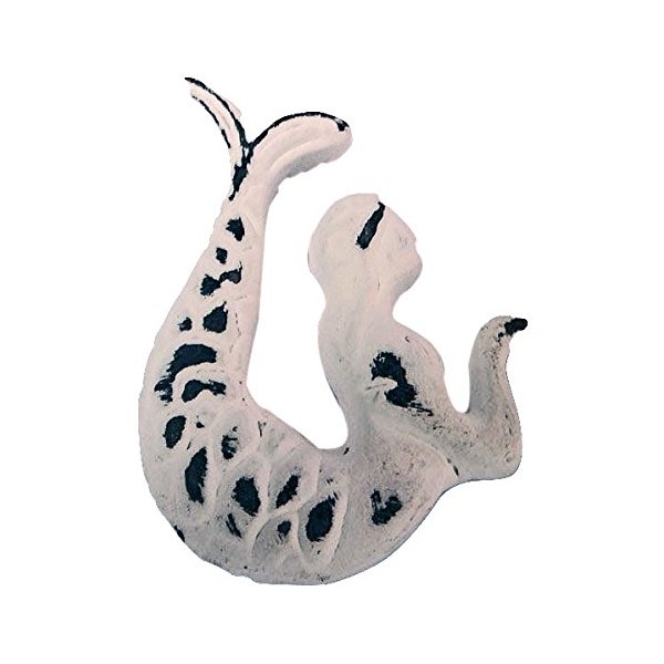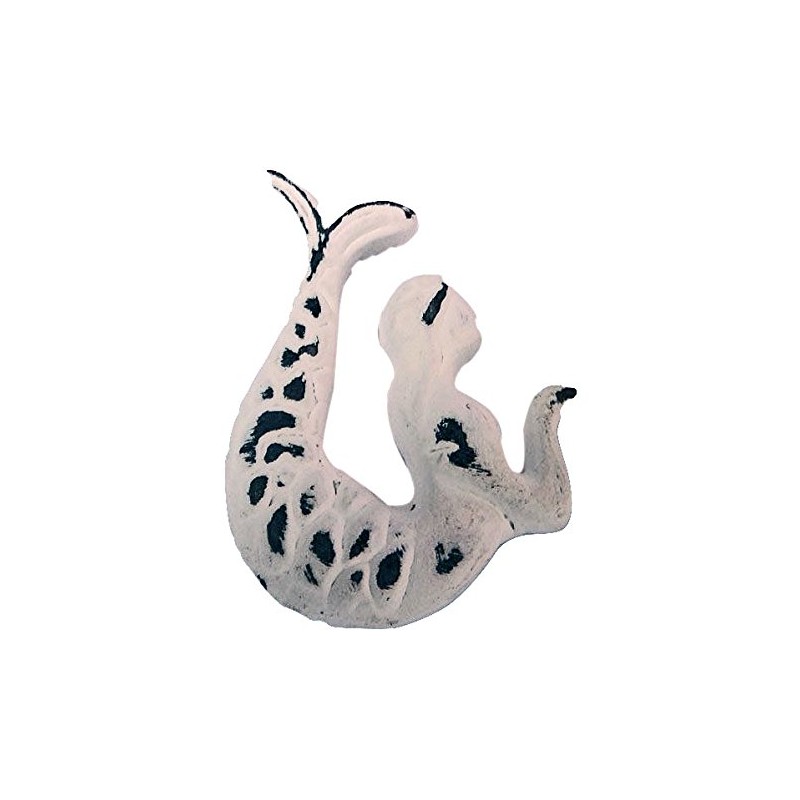 Nautical Tropical Mermaid Drawer Knob Right Facing Distressed White on Iron Set of 2
