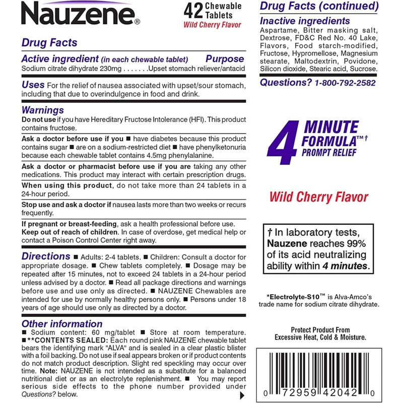 Nauzene Upset Stomach & Nausea Chewable Tablets Wild Cherry Flavor - 42 ct, Pack of 6
