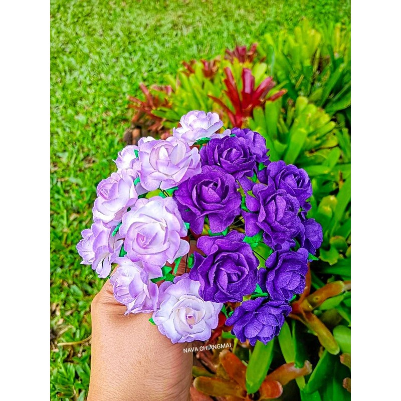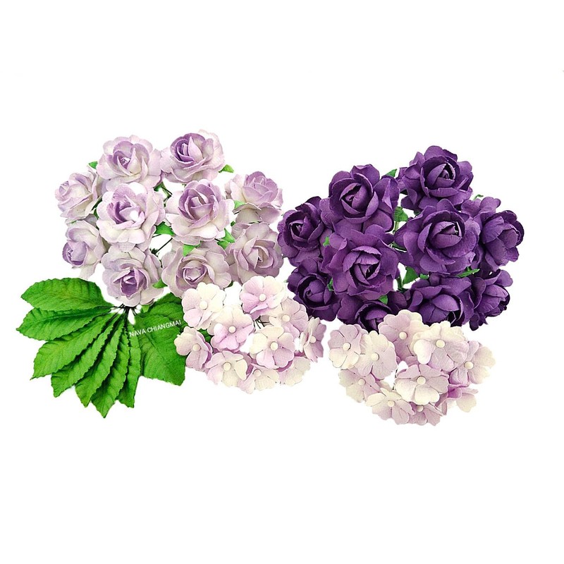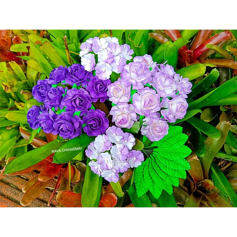 NAVA CHIANGMAI Mixed Mulberry Paper Rose Artificial Flowers Wedding centerpieces Embellishment Scrapbooking Dollhouse Supplies Card DIY Flower Accessories (Purple)