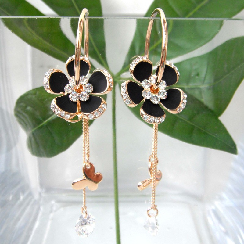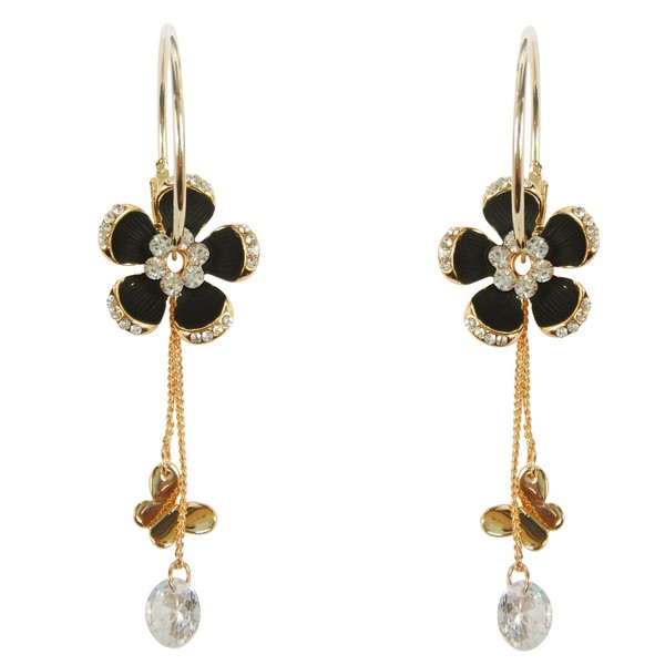 Navachi 18k Gold Plated Black Enamel Flower Crystal Chain Clear Zircon Az2721e Hoop Earrings(dia. 2.5cm)