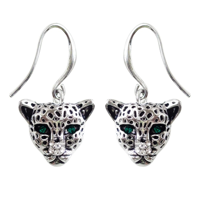 Navachi 18k Gold Plated Cheetah Leopard Head Crystal Dangle Drop Earrings, Metal Glass Rhinestone, crystal,