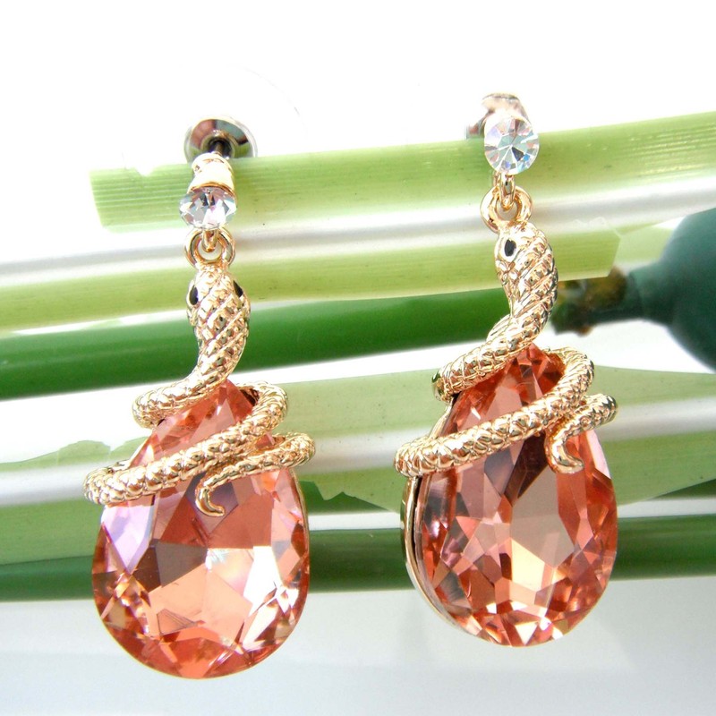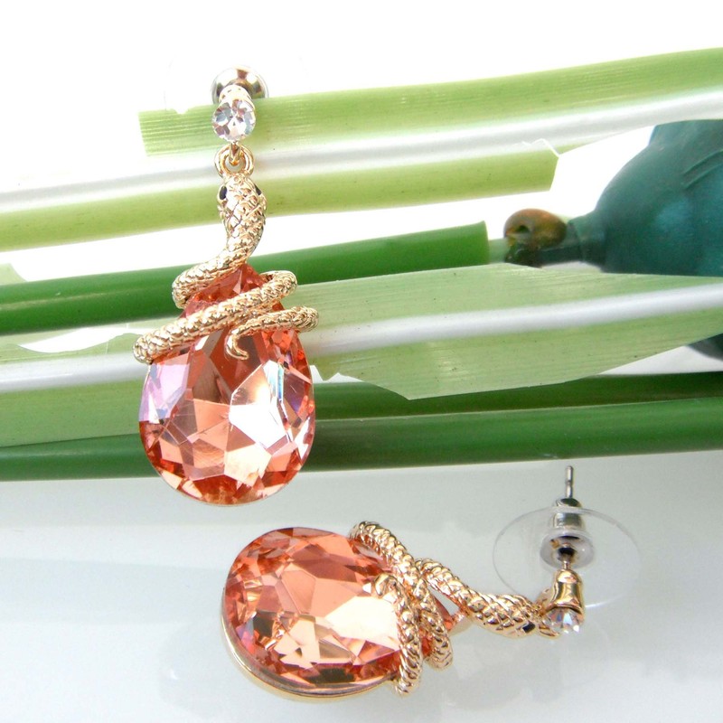 Navachi 18k Gold Plated Crystal Orange Zircon Snake Drop Dangle Az2622e Stud Earrings
