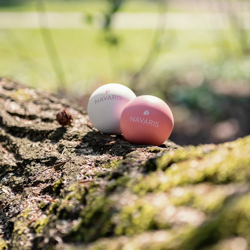 Navaris Stretch Balls, Set of 2, Lacrosse Balls Yoga Balls - Trigger Point Balls, 2 Firmness, Calf, Neck, Shoulder Blades, White, Pink