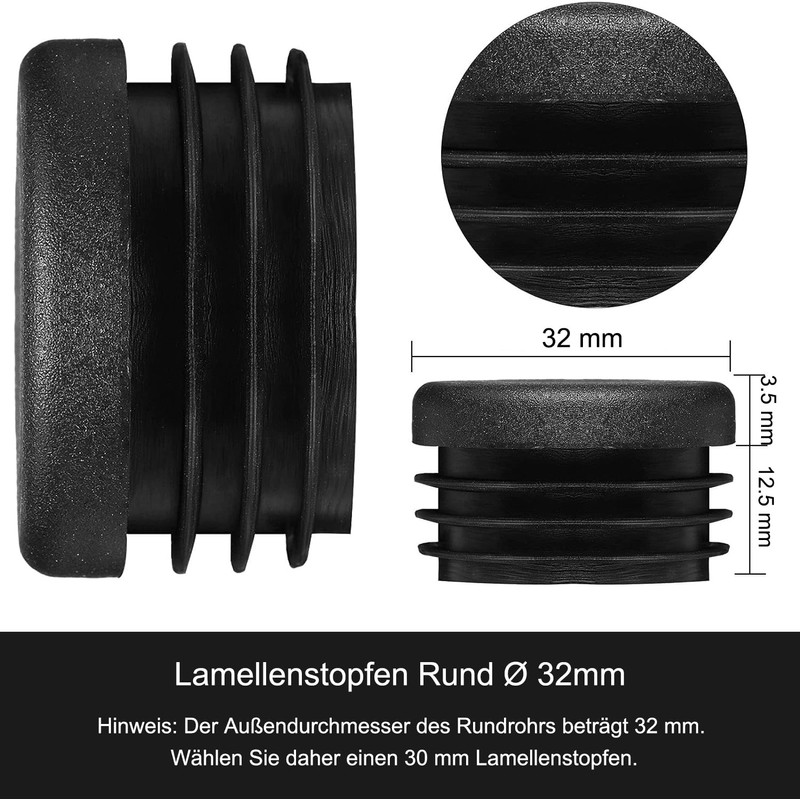 Navasen Lamellar Plugs, Round, Diameter 32 mm, Pack of 10 End Caps, Steel Tube, Pipe Cover Made of High-Quality Plastic, Round Pipe Plugs for Round Pipe, Black
