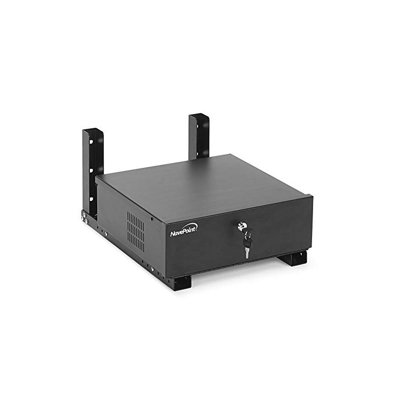 The NavePoint Wall-Mount Brackets are designed to safely mount DVR lock boxes to the wall to secure digital video recorders, VCR or other electronic equipment storing sensitive media. The brackets are adjustable from 15 - 18-inches, 1-inch increments, to accommodate multiple sizes of DVR boxes. The brackets are versatile with the flexibility to be wall-mounted to hold DVR boxes horizontally or vertically. Rely on durability from high-quality Cold Rolled Steel construction in classic Black Powder Coated finish.