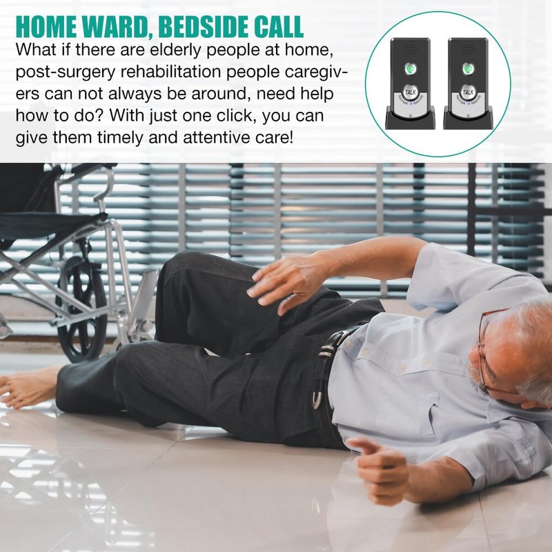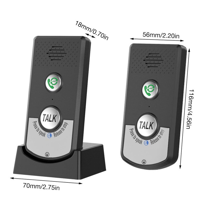 - Emergency pager: For older people or patients with restricted mobility at home, they do not have to scream to attract attention. Simply press the microphone button to ask another intercom for help.