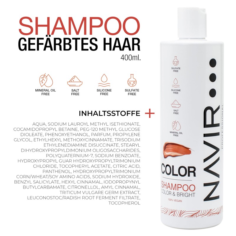 NAVIR Professional Colour Protection Care Set: Shampoo and Mask for Coloured Hair - Nourishment, Moisture and Protection | Sulphates, Parabens, Silicones and Salts Free - 400 ml + 300 ml